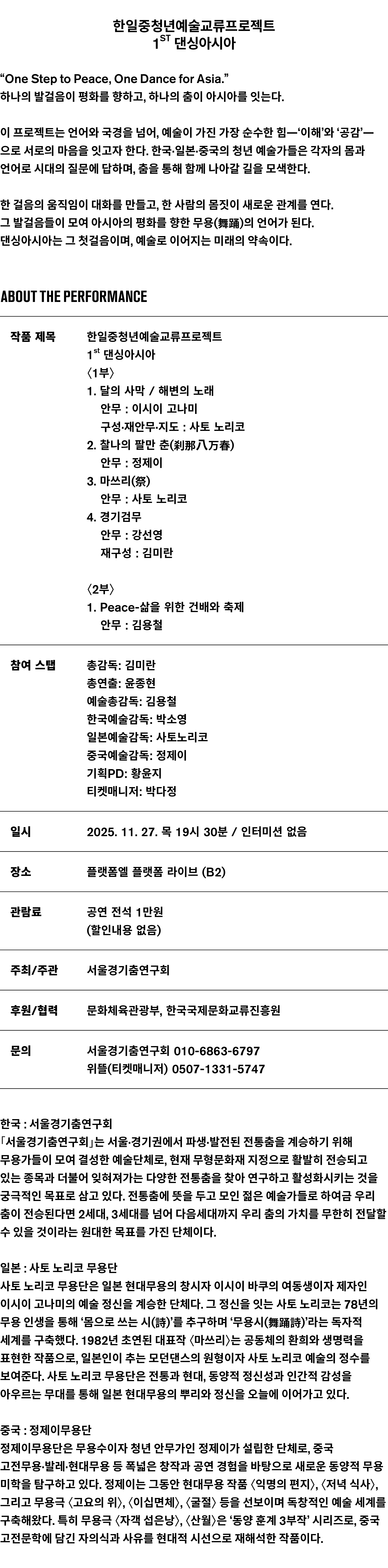 서울경기춤연구회 010-6863-6797 / 위뜰(티켓매니저) 0507-1331-5747